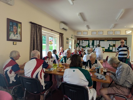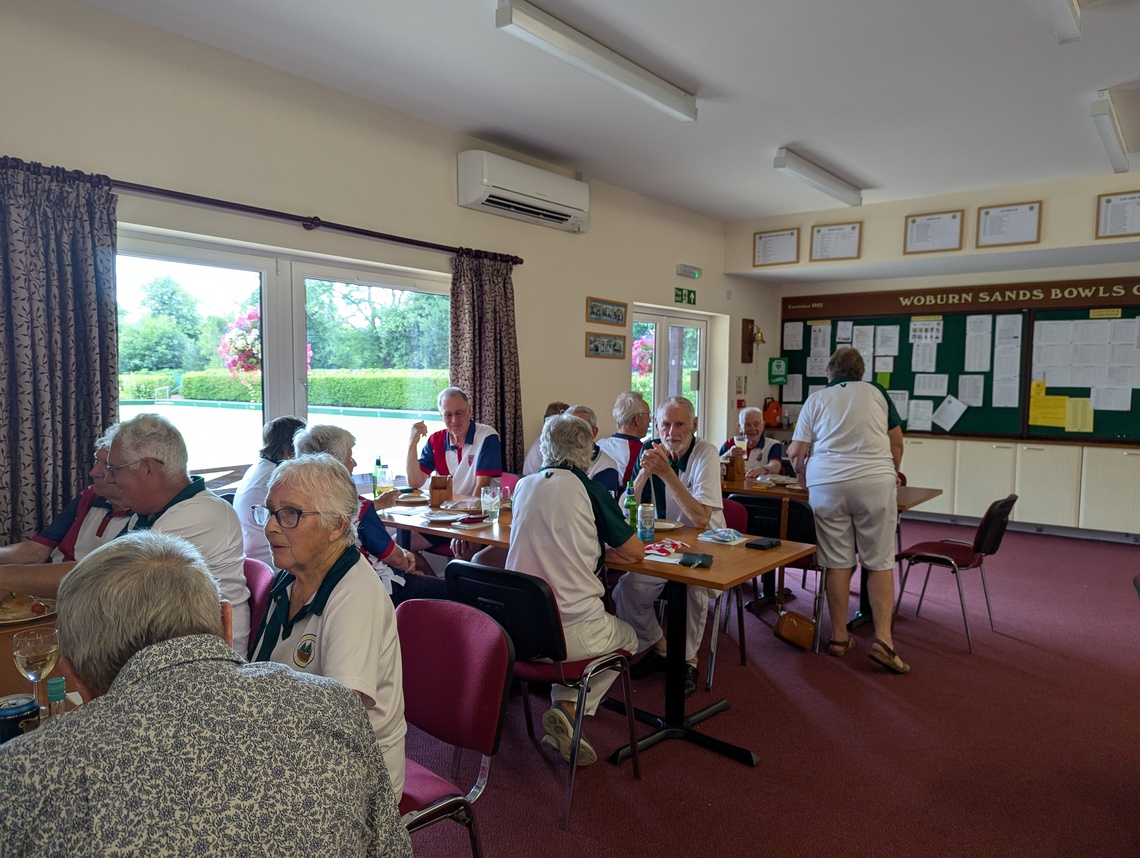 We took 5 triples to Woburn Sands on a hot and sticky afternoon. We agreed to try to play 18 ends but would review it if players were feeling the heat too much – in the event one rink stopped after 16 ends but all the others played the full 18.